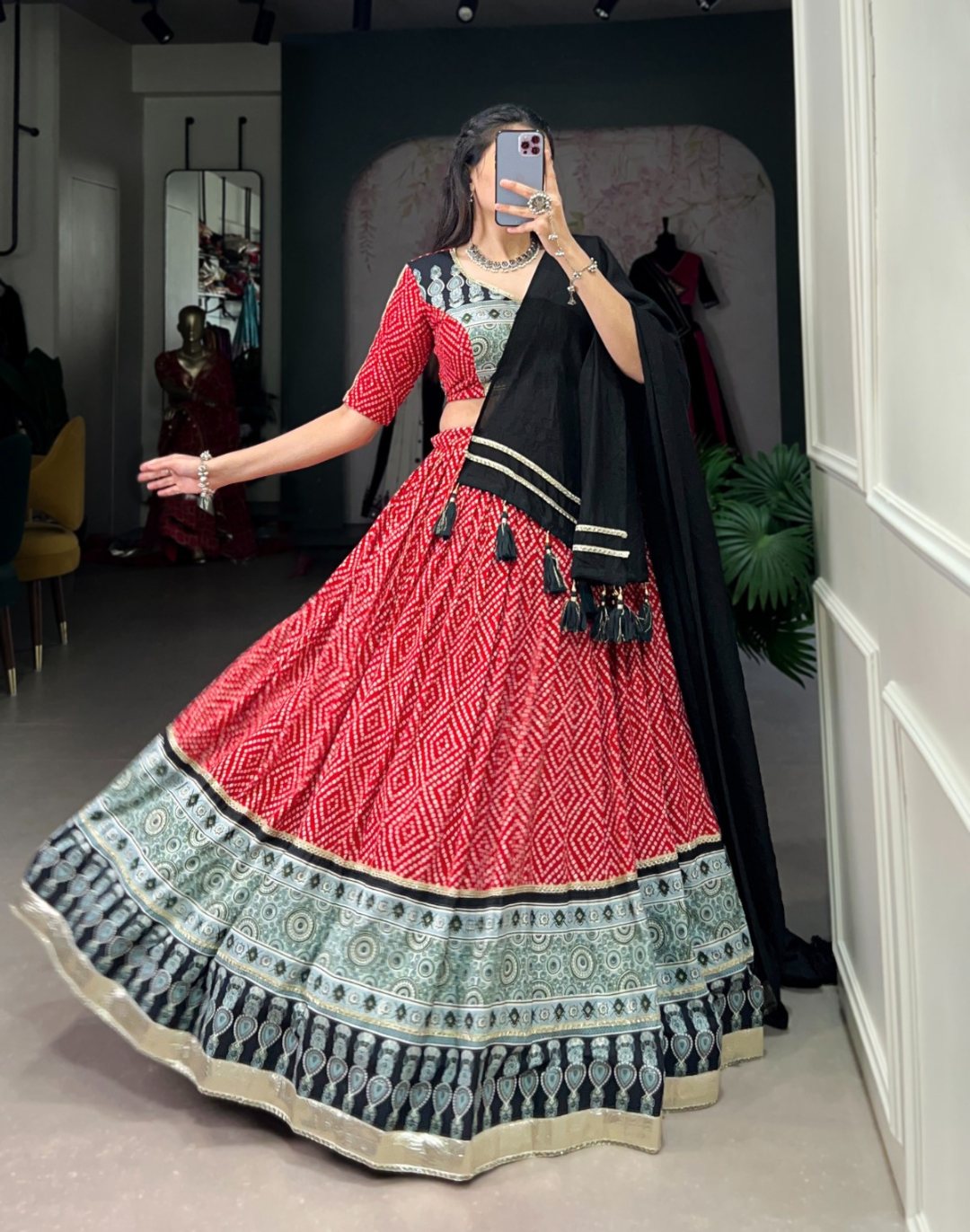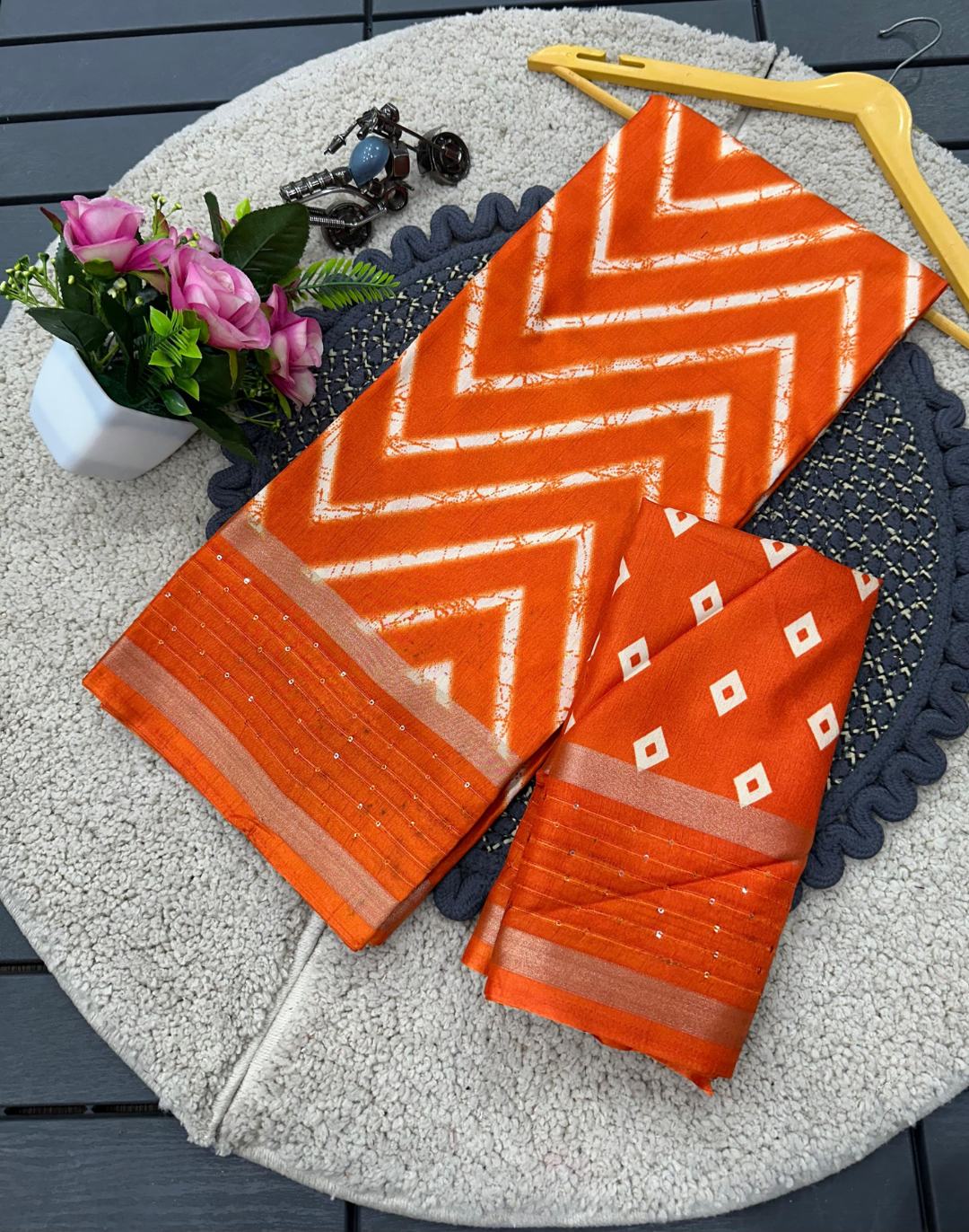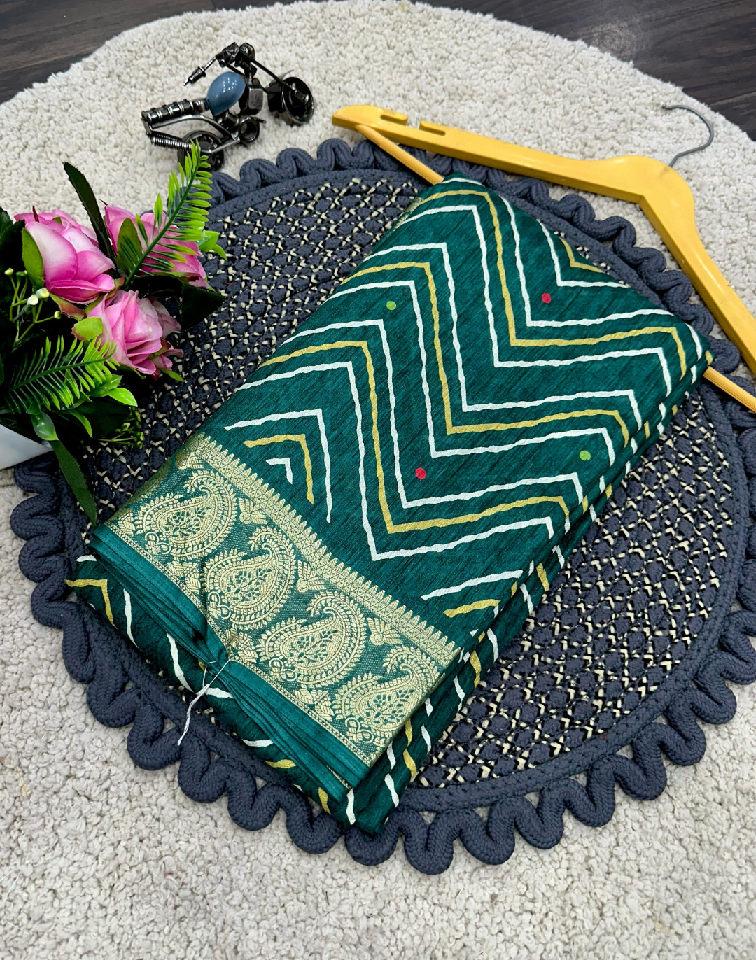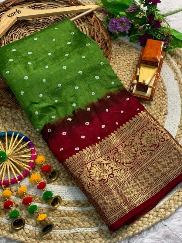 Pure Bandhej Silk Saree with Kanchipuram Zari Border