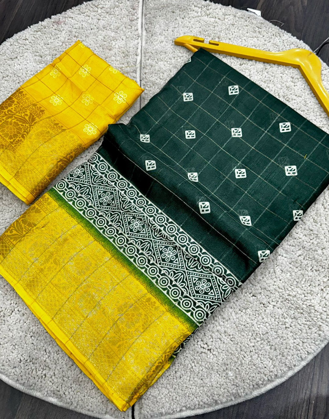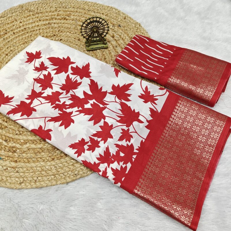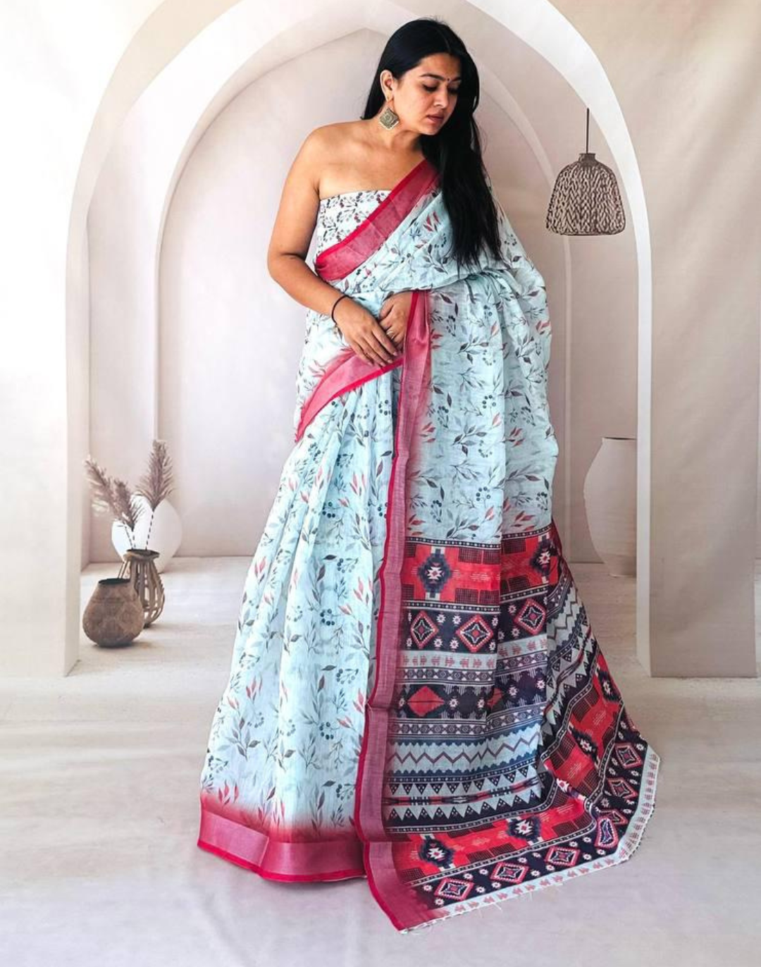 Elegant Plain Linen Digital Print Saree Set – Yugal Loom