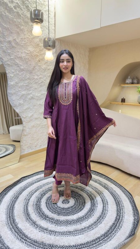 Elegant Kashmiri Embroidered Cotton Kurti Set with Malmal Dupatta | Summer Wear Collection