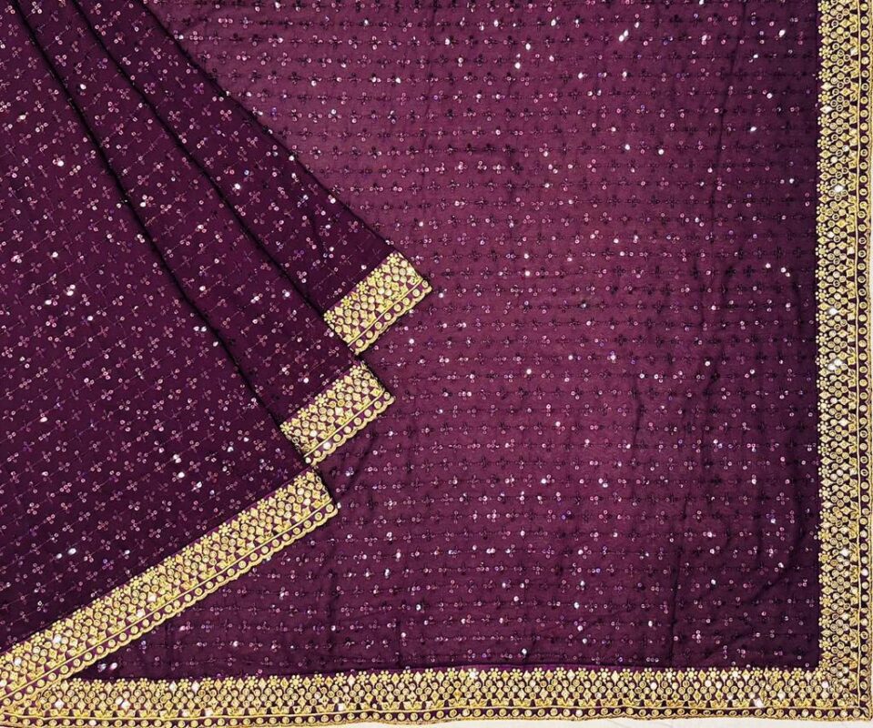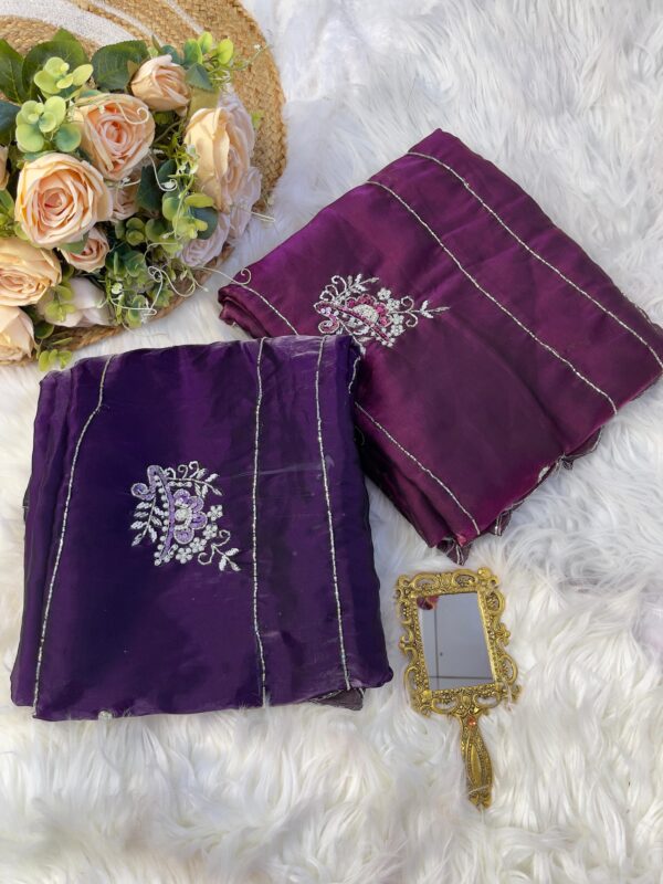 Pure Soft Jimmy Choo Silk Saree – Hand Khatli & Cutdana Embellished Elegance
