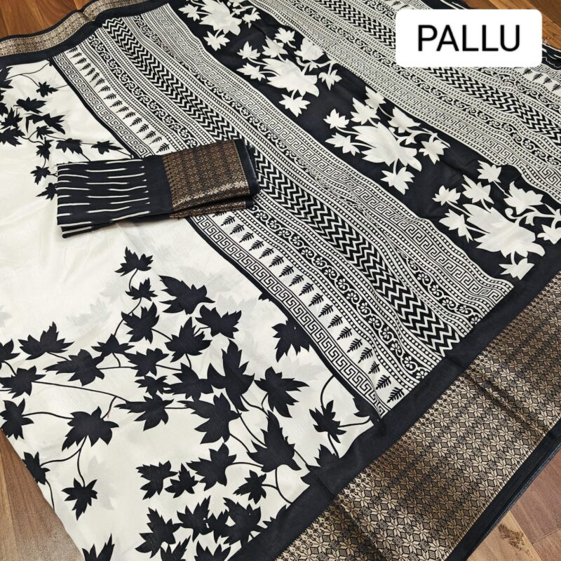 New Design Launch – Elegant Plain Linen Saree with Digital Print & Fumka Work